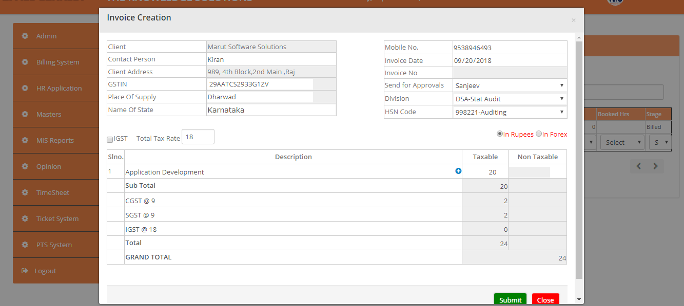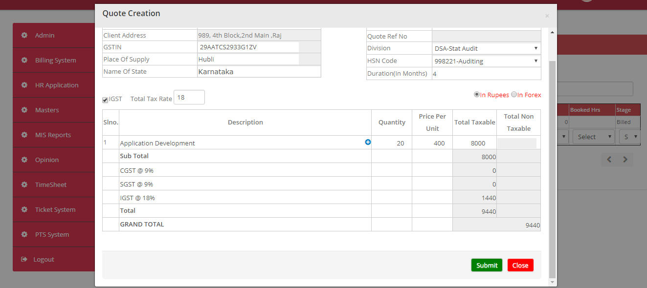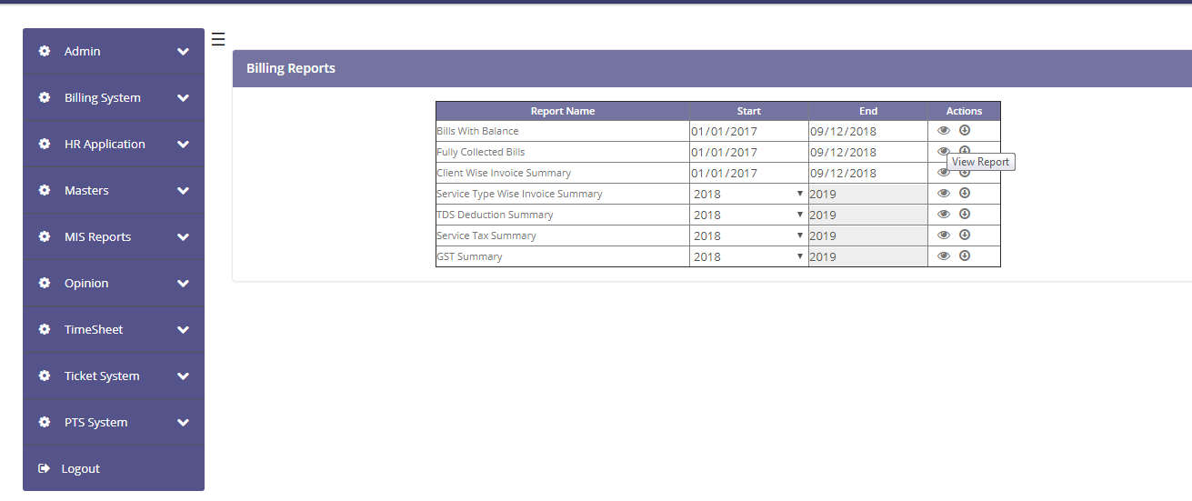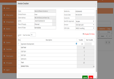 Billing System have the functionalities like Creation of Invoice, Reporting Invoice, Approvals, Receipt creations and quotation.
