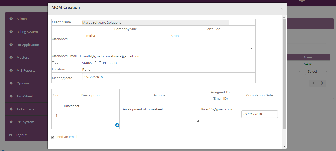 Creates Minutes of meeting and that you can send in minutes. And view the Mom